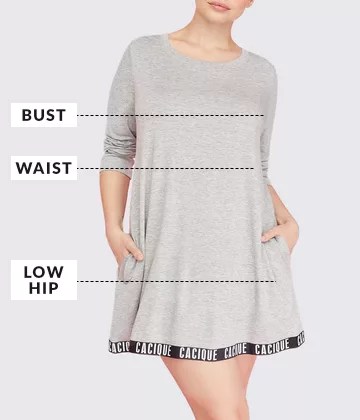 The bust measurement is calculated by taking the circumference (front through back) of the fullest area around the bust.